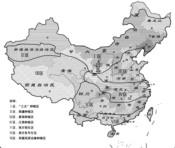 图2-1 中国蓖麻区域划分