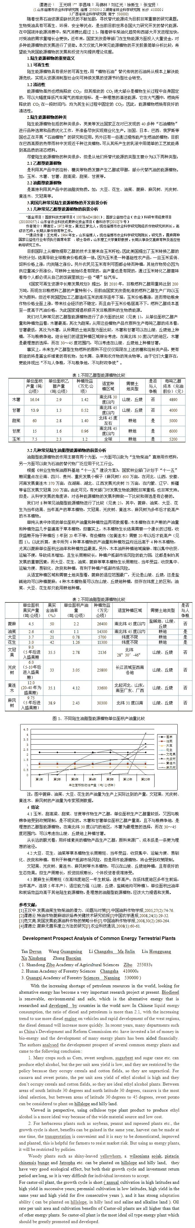 对几种常见陆生能源植物的开发前景进行了简单分析比较,希望能为我国能源植物的发展和投资方向提供理论依据,缓解石化资源紧缺,满足日益增长的能源需求。