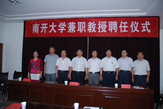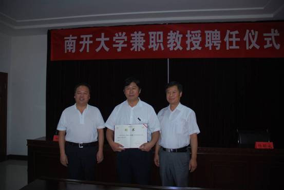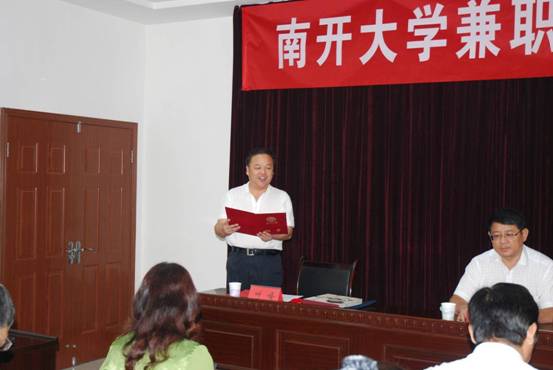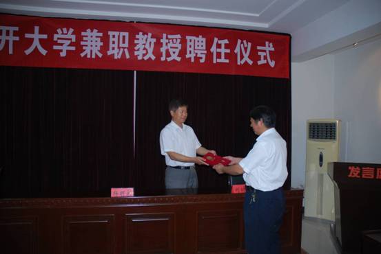 天津市人民政府驻济南(鲁冀晋蒙)办事处主任、党组书记刘功弼主任为王光明院长颁发南开大学兼职教授聘书