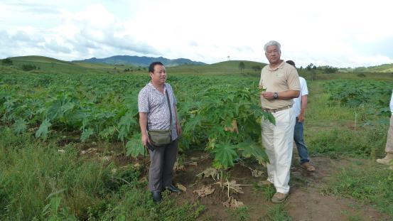 淄博市农业科学研究院李敬忠农艺师在老挝田间指导蓖麻种植