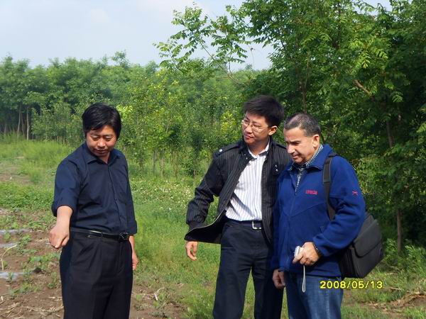 淄博农科院蓖麻育种国家公益性行业专项执行专家王光明研究员为以色列专家介绍蓖麻生长情况