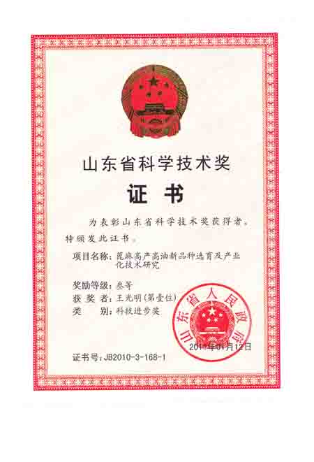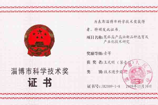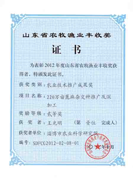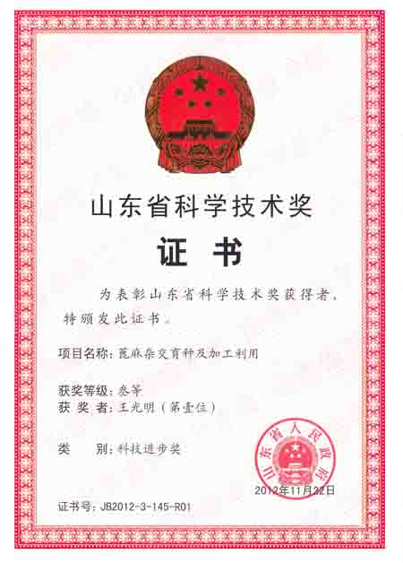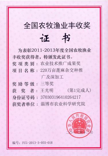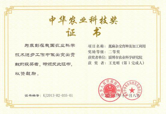 淄博市农科院院长蓖麻育种国家公益性行业专项执行专家 王光明 研究员2014年12月2日荣获国家科技进步二等奖